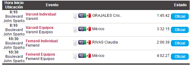 ** Por reglamento de los JCC, ningún país puede ocupar las 3 plazas por lo que el 3er lugar se otorgo a Lizandra Hdz